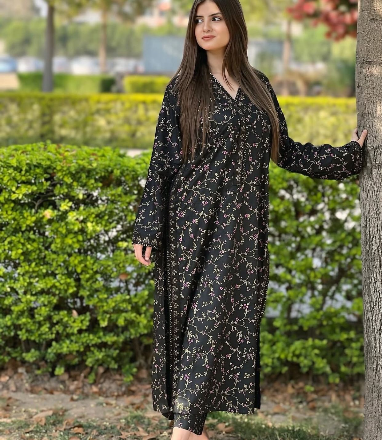 Black Leaf Embroidered 2PC