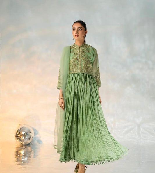 Experience elegance with the Vanzila Maxi, crafted from luxurious crushed silk for a smooth, flowing silhouette. Available in Small, Medium, Large, and XL, this set includes a maxi dress and matching dupatta. The length can be customized to perfectly suit your height, ensuring a tailored fit. Originally priced at 7800 PKR, now available for 3650 PKR, this versatile ensemble combines comfort and style for any occasion.